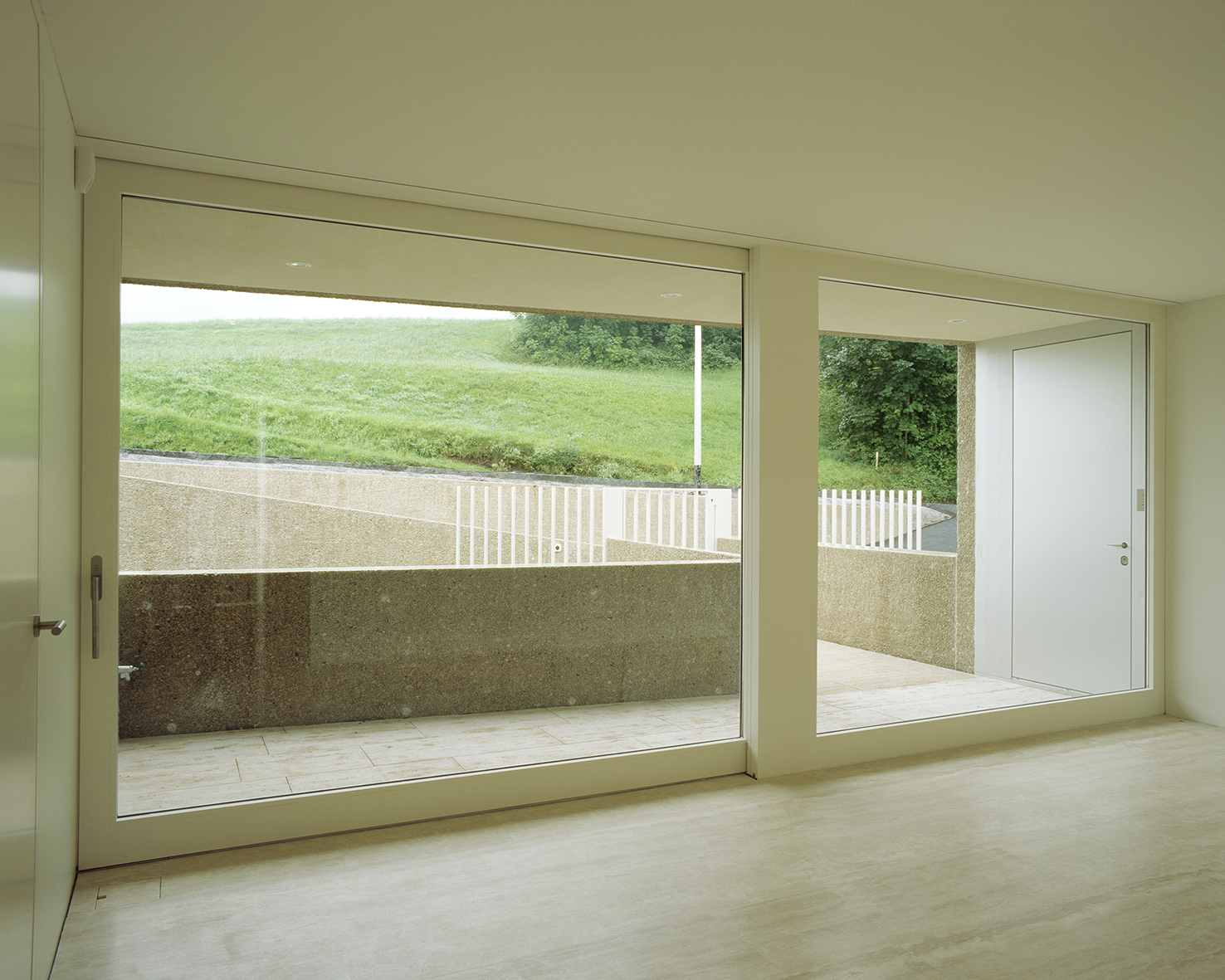 Östlich der Häuser ins Terrain eingeschnittene Höfe ergänzen die mittleren Wohnungen mit einem attraktiven Aussenraum; in den obersten Wohnungen wird dieser Aussenraum in Form eines begehbaren Daches angeboten.